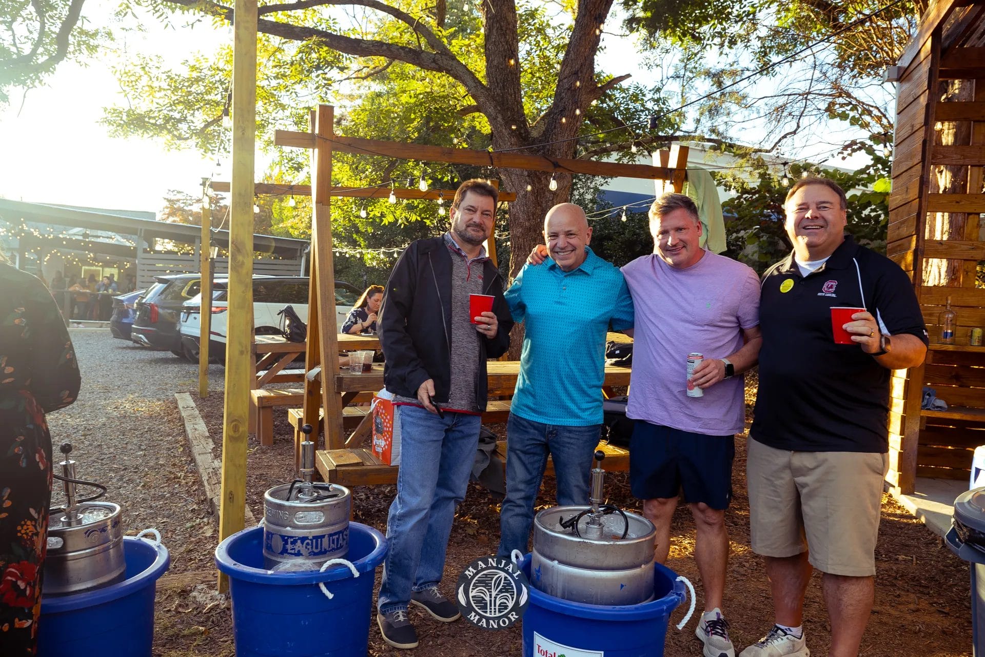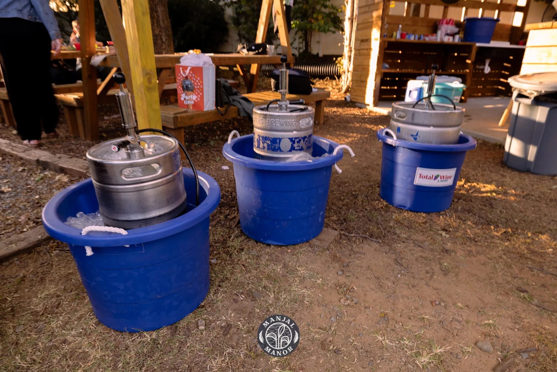 When it came to decorating, Molly and Ron kept things simple. The beauty of a ’90s keg-themed wedding reception lies in its relaxed, casual vibe, and the couple embraced this by letting the natural beauty of Manjal Manor do most of the work. With string lights, picnic tables, and beer kegs serving as both decorations and entertainment, the venue’s rustic charm shone through without the need for extravagant decor. If you’re looking for a wedding reception venue that offers a naturally stunning backdrop, Manjal Manor is a great choice.